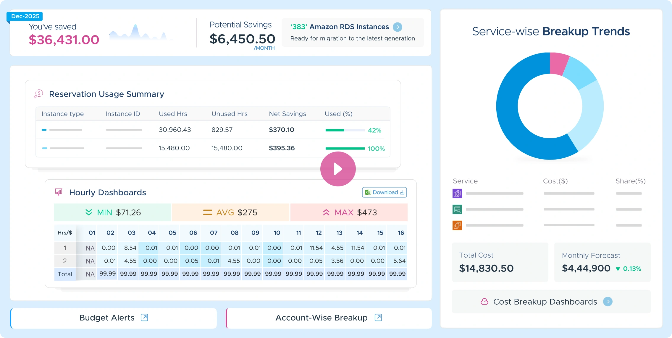 - Account & Service-wise Cost Breakup Trend (Monthly, Weekly, Daily).