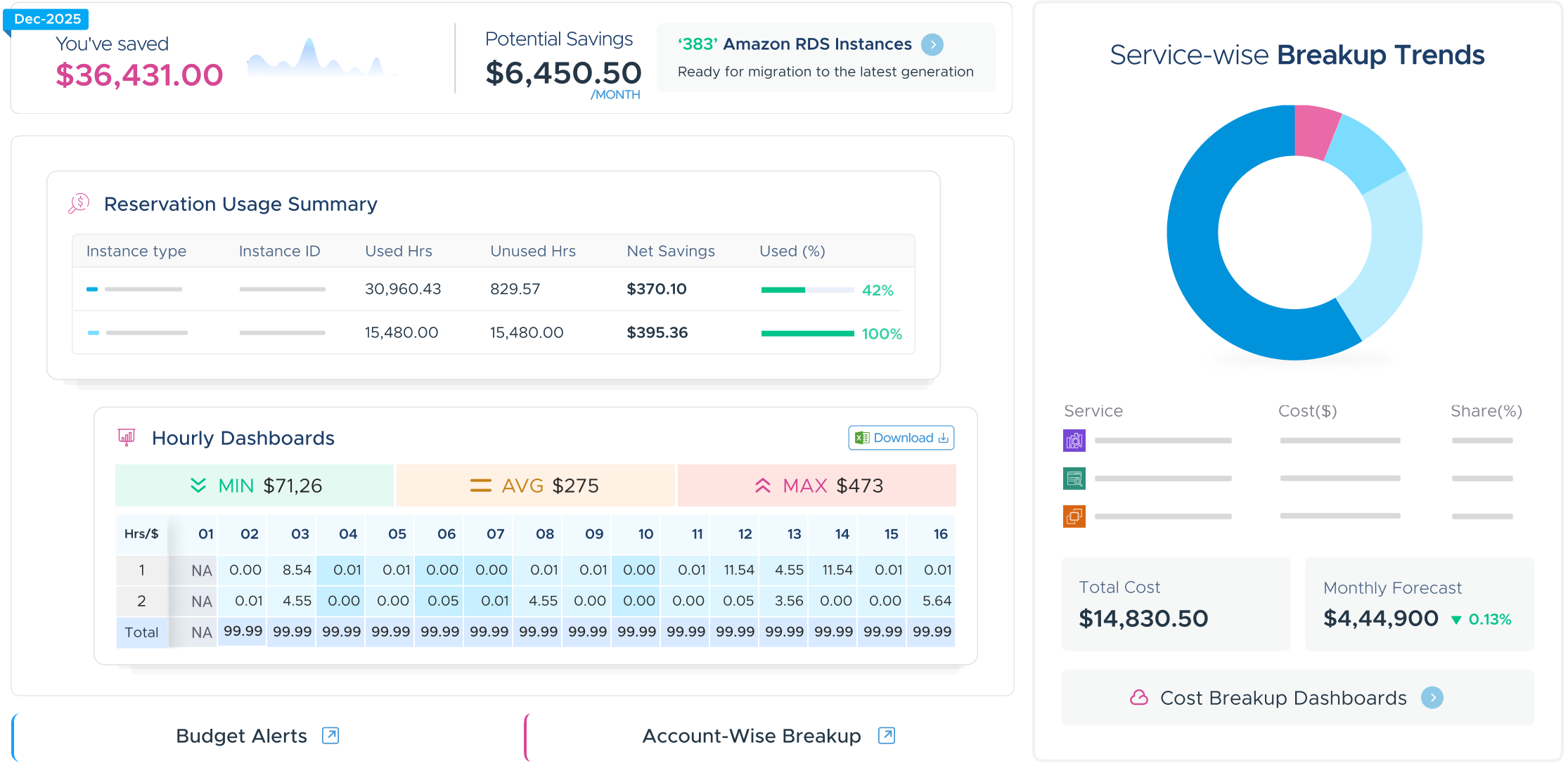 - Account & Service-wise Cost Breakup Trend (Monthly, Weekly, Daily).