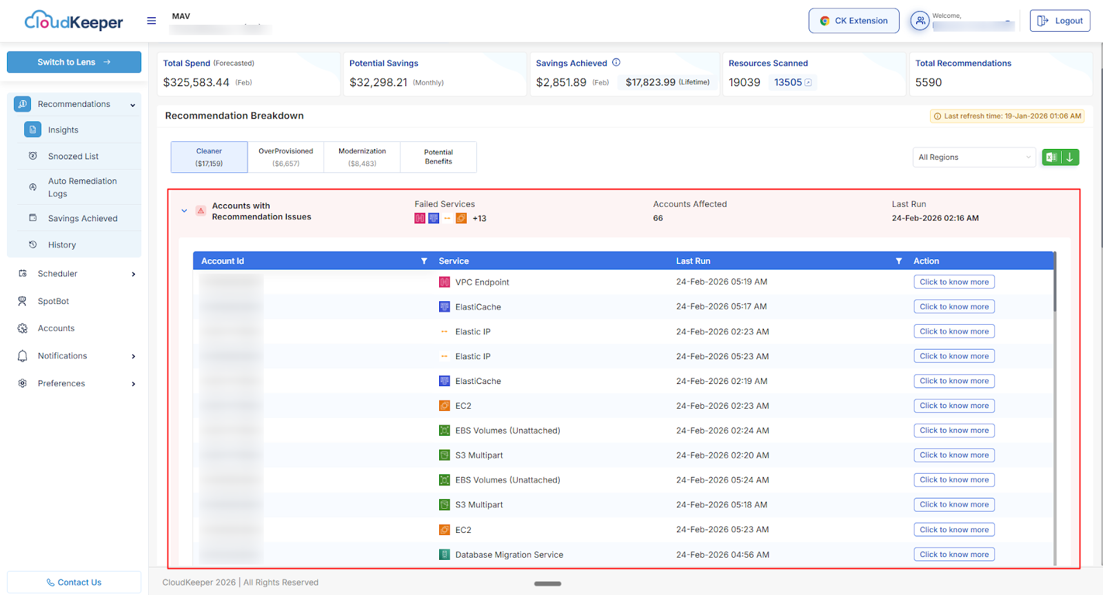 | Issue in assuming IAM Role, navigate to accounts page to re-link the account to refresh this recommendation. |